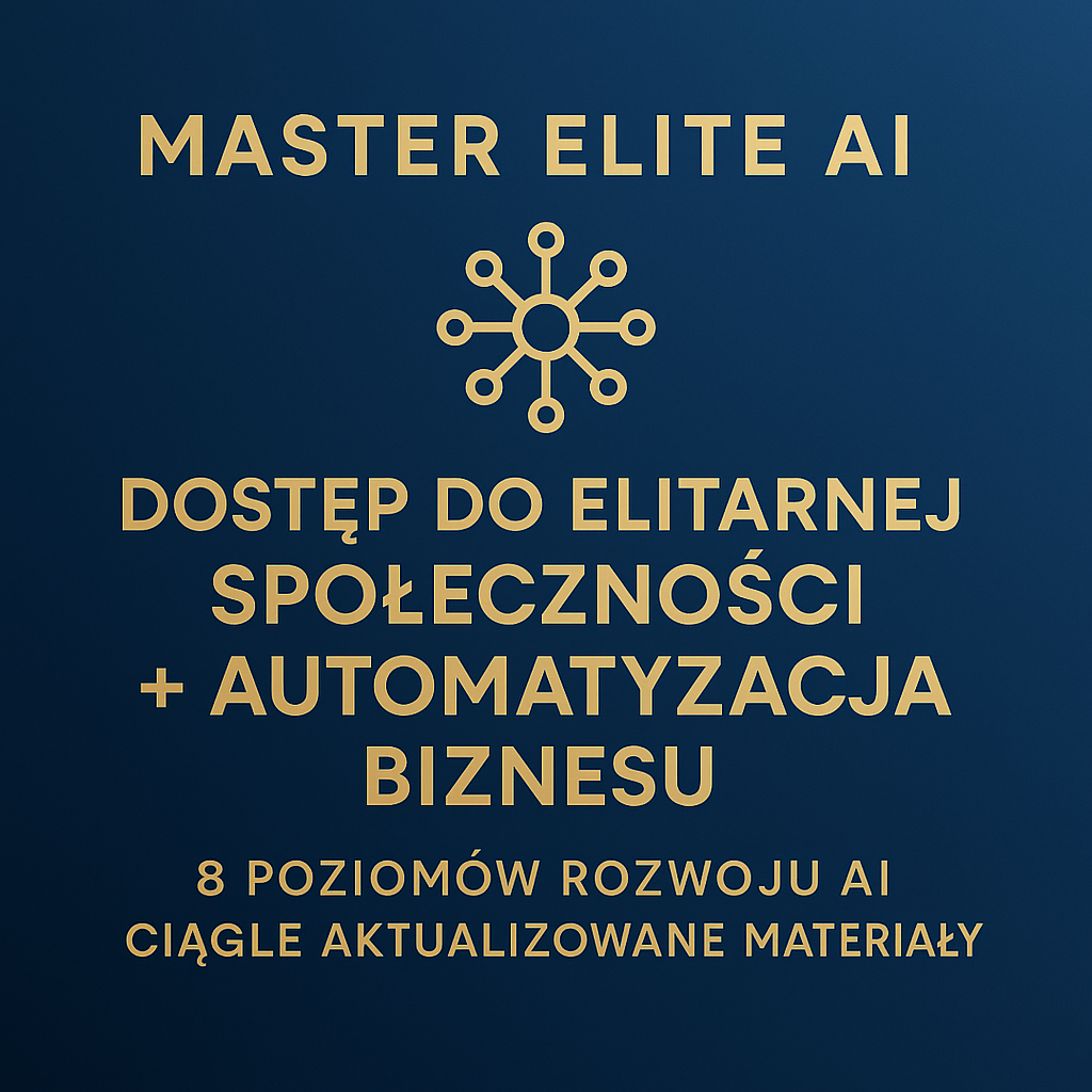 Master Elite AI to nie kolejny kurs. To kompletny pakiet — dostęp do zamkniętej społeczności, stale aktualizowanych materiałów, wyzwań, spotkań na żywo i pełnej ścieżki automatyzacji biznesu w 8 krokach.